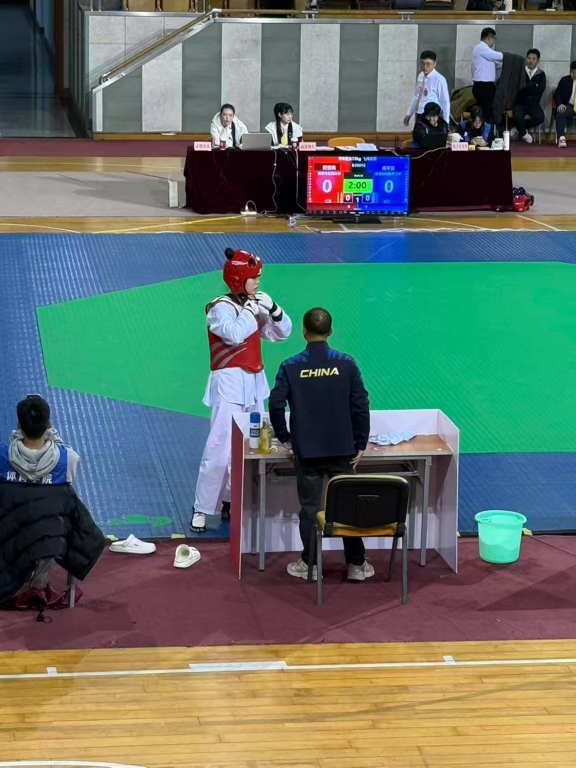 11月8日的赛场,72kg级新生嵇馨冉上演逆风翻盘好戏:首战开局便被对手踢头斩获三分,陷入被动的她沉着调整节奏,凭借远超同龄人的顽强韧劲发起反击,最终以2:0拿下首胜。后续遭遇冠军选手时,她依旧毫无退缩,奋战至最后一刻,最终斩获第五名,用行动诠释“坚韧不拔”的体育力量。